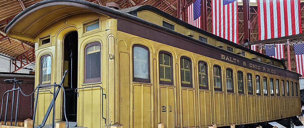 Built in 1868 by the Wason Manufacturing Company in Massachusetts for the New Jersey Central Railroad. It was then sold to the Baltimore & Ohio Railroad in 1927. Passengers sitting at either end of the coach were lucky to be close to the stove. However, this would be a fire hazard if the railcar derailed. This coach was donated to the Museum along with Coach 20. The roof collapsed, causing damage to both coaches 20 and this coach. However, only this coach was repaired and is still on display at the roundhouse today.