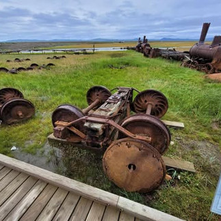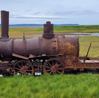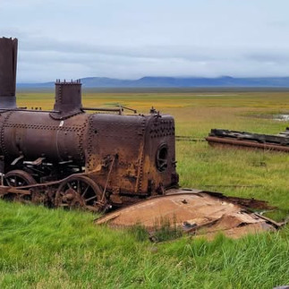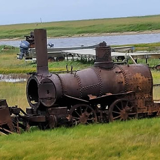 Starting in the big cities such as Chicago, IL, and New York, NY, the need of horses and passenger carriages were needed to transport commuters during the nineteenth century. Cities decided the heavy crowds required the need of elevated railroad systems but locomotives and rollingstock that were not too heavy for the trestles and could easily travel over tight curves. The three locomotives were Forney (named after Matthias N. Forney who designed the locomotives in 1866) and were the locomotives used on the elevated railroad. The Manhattan Railway found electric locomotives more modern and economical than steam, so they sold over three hundred locomotives and three were sold to the Council City and Solomon River Railroad in 1903 to begin the construction of the railroad. The final stop of all operations on the railroad consisted of three locomotives, seventeen flat cars with the steam shovel and pile-driving attachment, and two passenger cars when the great storm of 1913 came in from the Bering Sea washing out the Solomon River Bridge leaving the train here to sink and rust away. However, the road out here is open during the summer season for visitors to explore!
